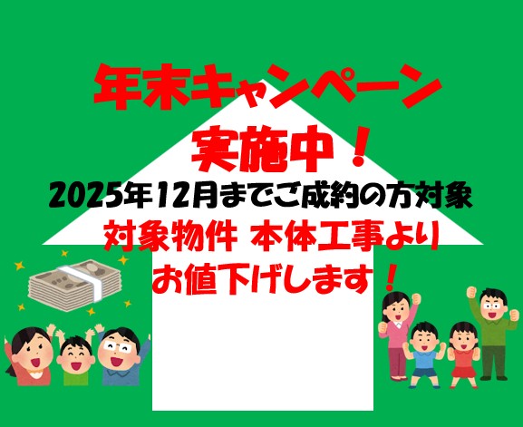 対象物件を今年度末までにご成約していただいた方には お値引きさせていただきます。 詳細はお問い合わせください。