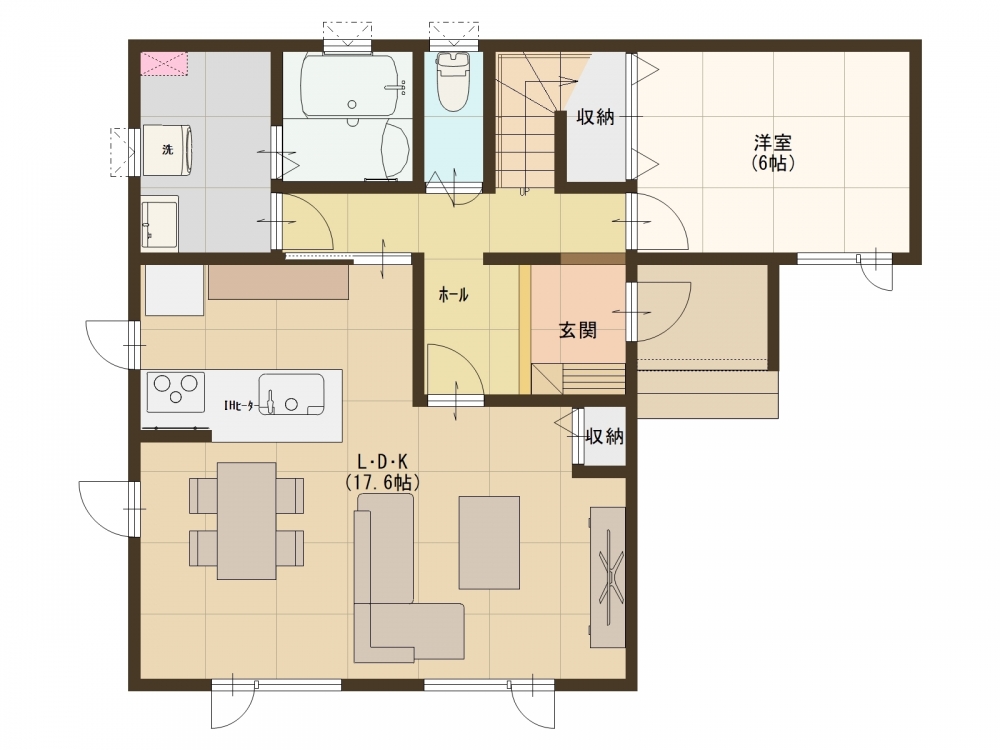 17.6帖の広々としたリビング、2階にもトイレが設置されておりますので、